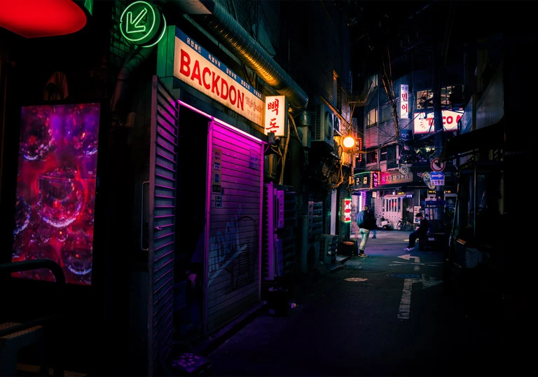 A dim alley in the Euljiro neighborhood.