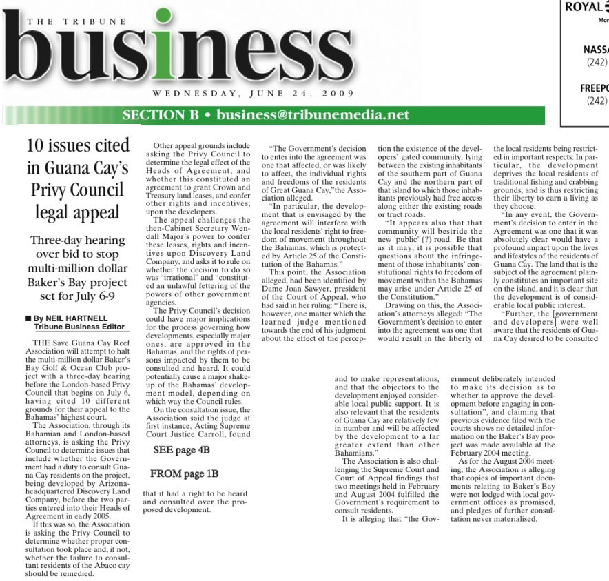 Save Guana Cay Reef has posted a press release on the Privy Council Ruling:The following comments result from the Judgment delivered by the Privy Council on November 17, 2009 in the Save Guana Cay Reef & Bakers Bay development continuing litigation saga.